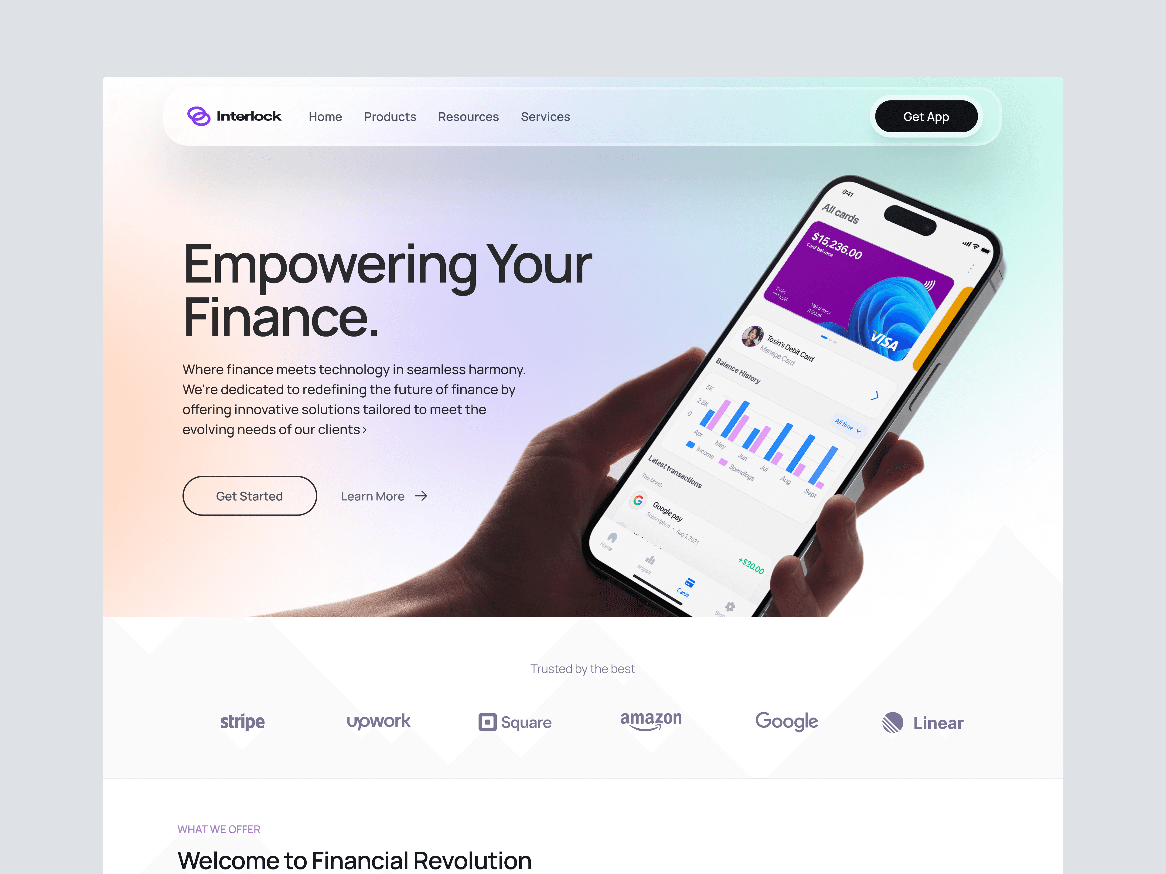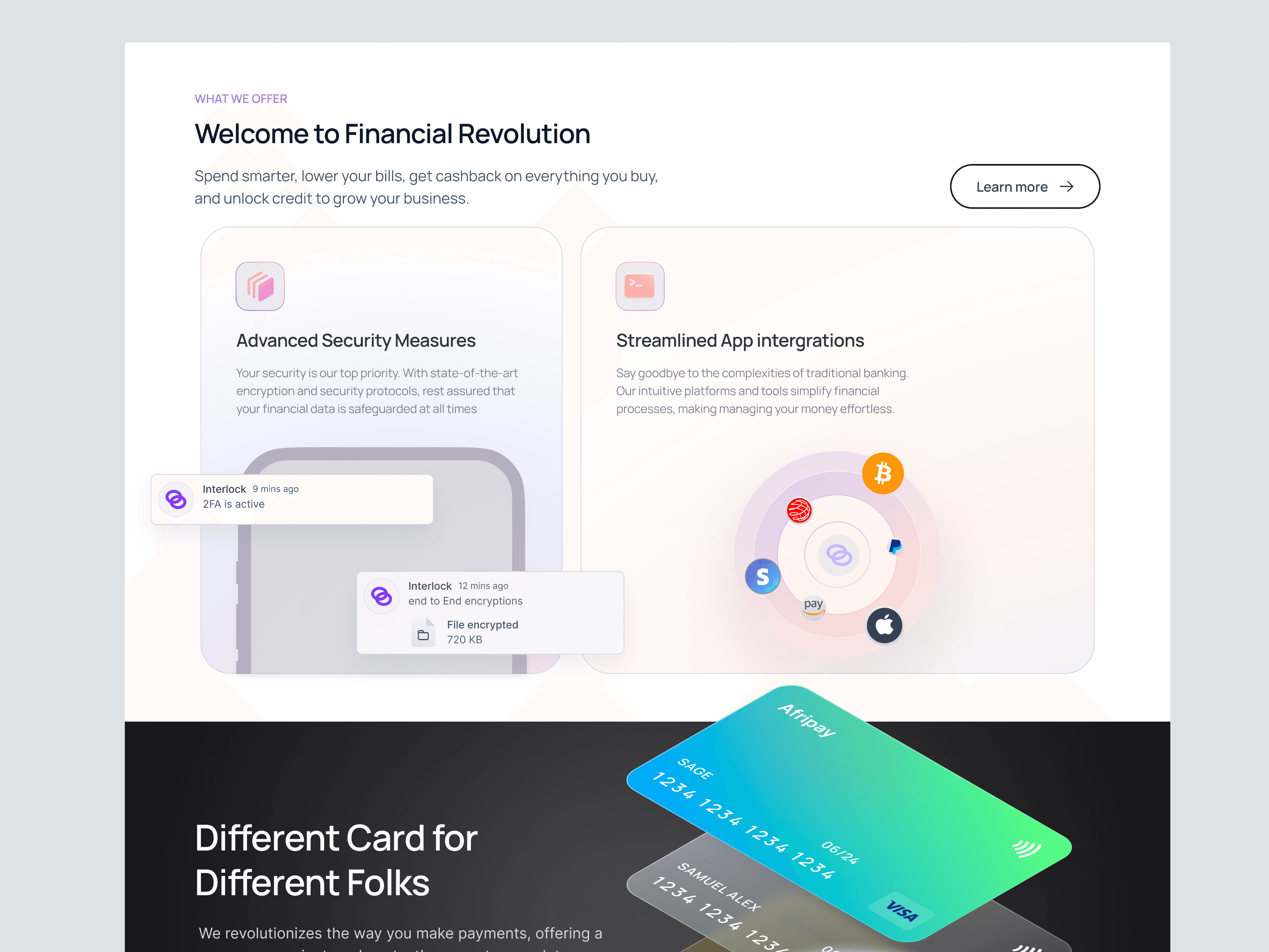 Interlock is an exploration for a fintech landing page